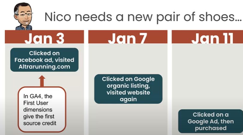 - GA4: Attributes a conversion to the date of the actual transaction or conversion event.