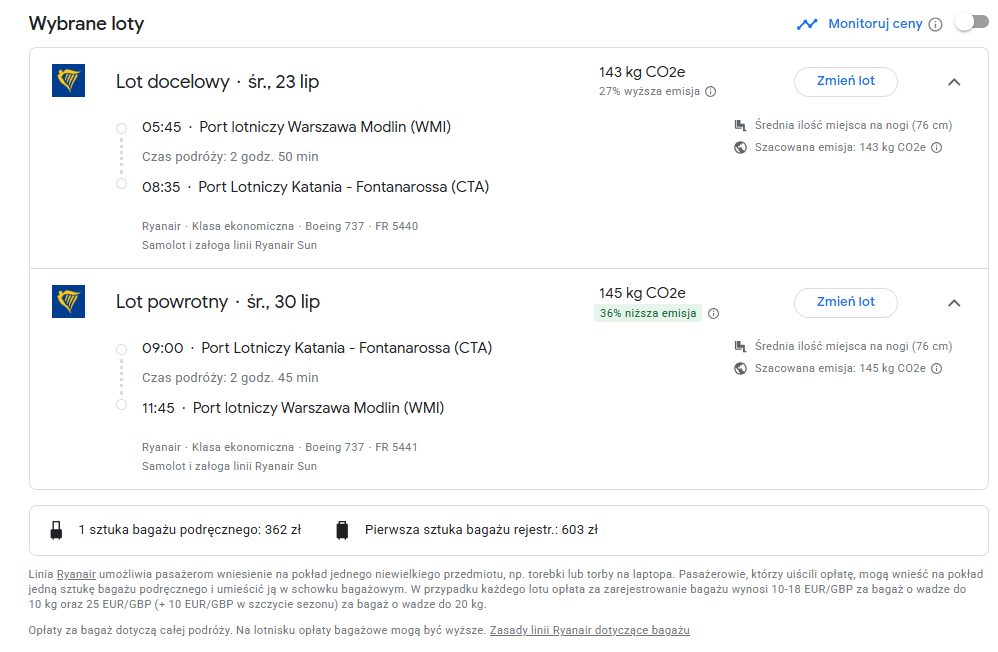 Wycieczka samodzielna, lot z warszawy, Modlin